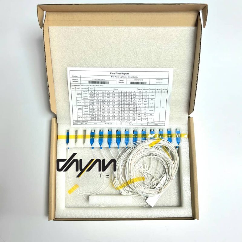 اسپلیتر فیبر نوری 1 به 32 (PLC Fiber Optic Splitter 1×32) یکی از مهم‌ترین تجهیزات در سیستم‌های توزیع فیبر نوری است که وظیفه تقسیم یک سیگنال نوری ورودی به ۳۲ مسیر خروجی را با دقت بالا و افت کم بر عهده دارد. این تجهیز بخش جدایی‌ناپذیر از شبکه‌های مدرن FTTH (Fiber to the Home)، GPON (Gigabit Passive Optical Network) و FTTX محسوب می‌شود و برای توزیع سیگنال‌های دیتا، صدا و تصویر میان کاربران مختلف طراحی شده است.
